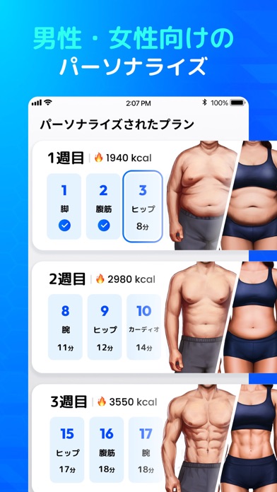 それだけではありません!自宅ワークアウトでは、筋肉をつけたり体重を減らしたり、単に健康を維持したりするために、個別のニーズに合わせたパーソナライズされたプランも提供しています。
