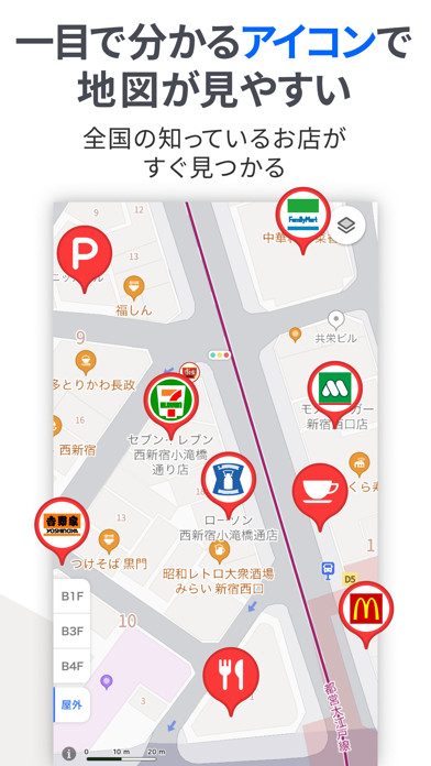 ・主要駅や地下街まで詳しくわかる屋内マップ。階ごとの地図で安心して移動できます。