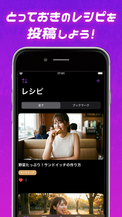 お気に入りのレシピをリアルタイムで教えたり、他のユーザーから通話で直接学ぶことができます。オリジナルのレシピが集まっているので、気に入ったものを保存して、実際に作ってみましょう!写真付きで自分のレシピを投稿することもできます。