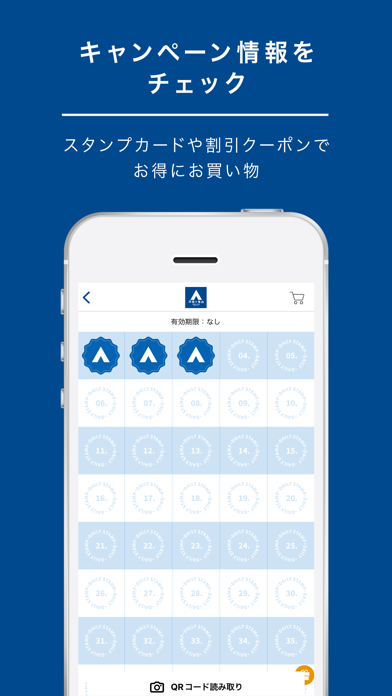 アプリを起動してデイリースタンプを貯めよう!40個貯まると店舗またはオンラインストアで使える1,000円の商品割引券をゲットできます。最新情報は「お知らせ」タブから確認いただけます。お得な情報をチェックしよう!